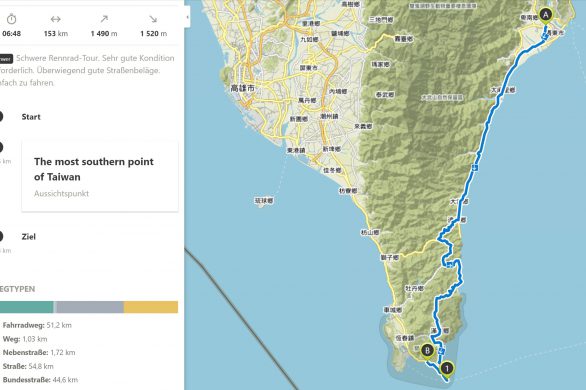 Vorschau auf morgige Tour von Taitung nach Kenting